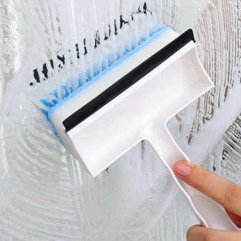 2-in-1 Glass Window Wiper & Cleaning Brush for Mirrors, Bathroom & Walls