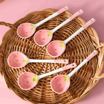 Strawberry Long Handle Ceramic Spoon – Cute & Durable Stirring & Soup Spoon