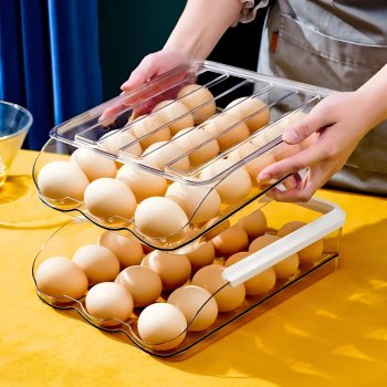 Automatic Slide Egg Storage Box with Dispenser for Fridge and Kitchen