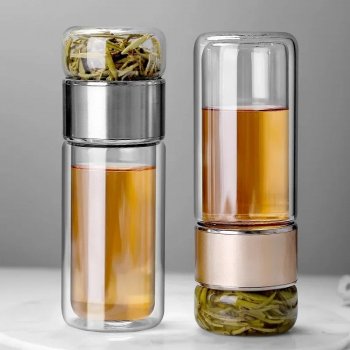 Double Wall Glass Water Bottle with Tea Infuser