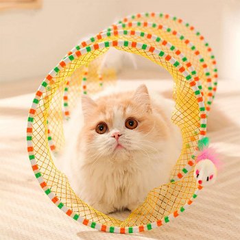 Interactive Foldable Cat Tunnel with Feather Toys and Mouse